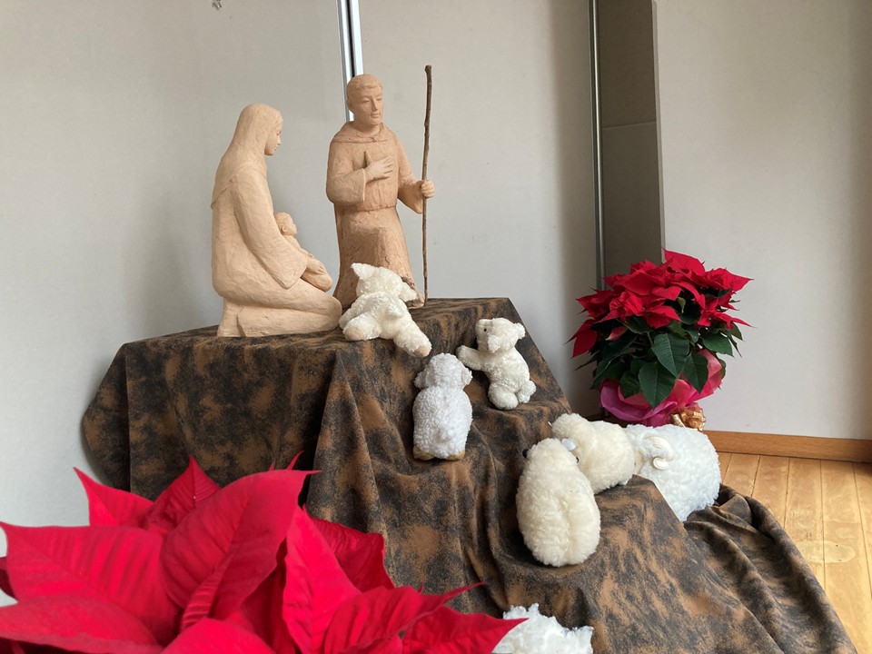 朝礼で「きよしこの夜」や「しずけき」の聖歌を歌い、ホームはクリスマスのムードでいっぱいです。
