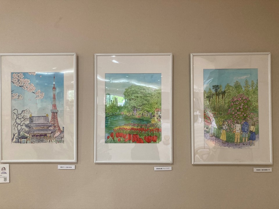 4月になり上野さんがコーヒーショップのスケッチ画の展示替えに来てくださいました。